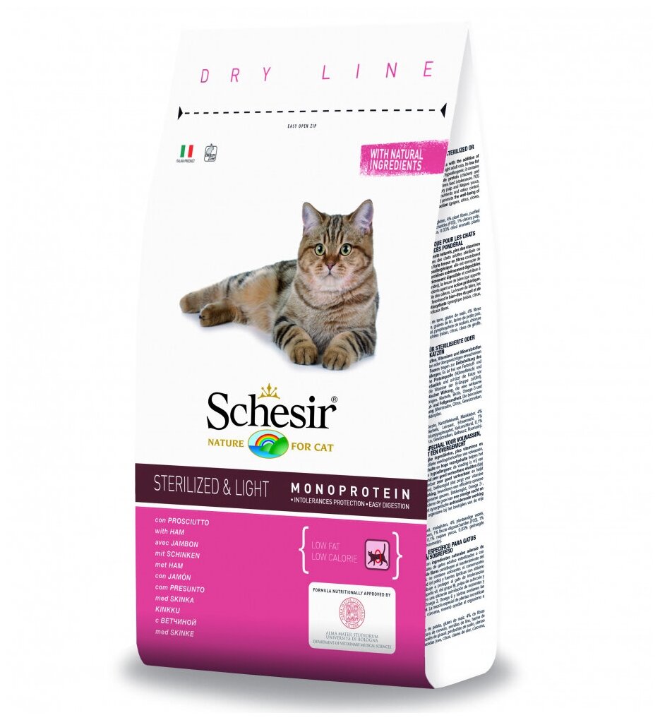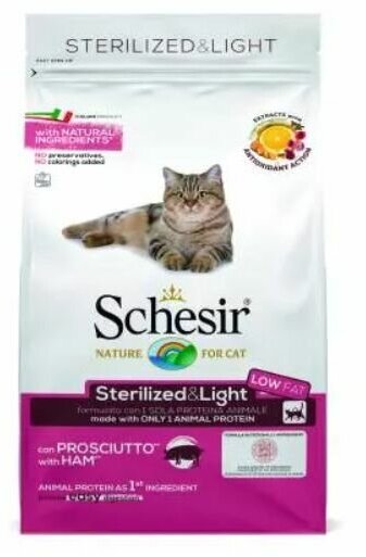Сухой корм для стерилизованных кошек Schesir профилактика избыточного веса, с ветчиной 1.5 кг