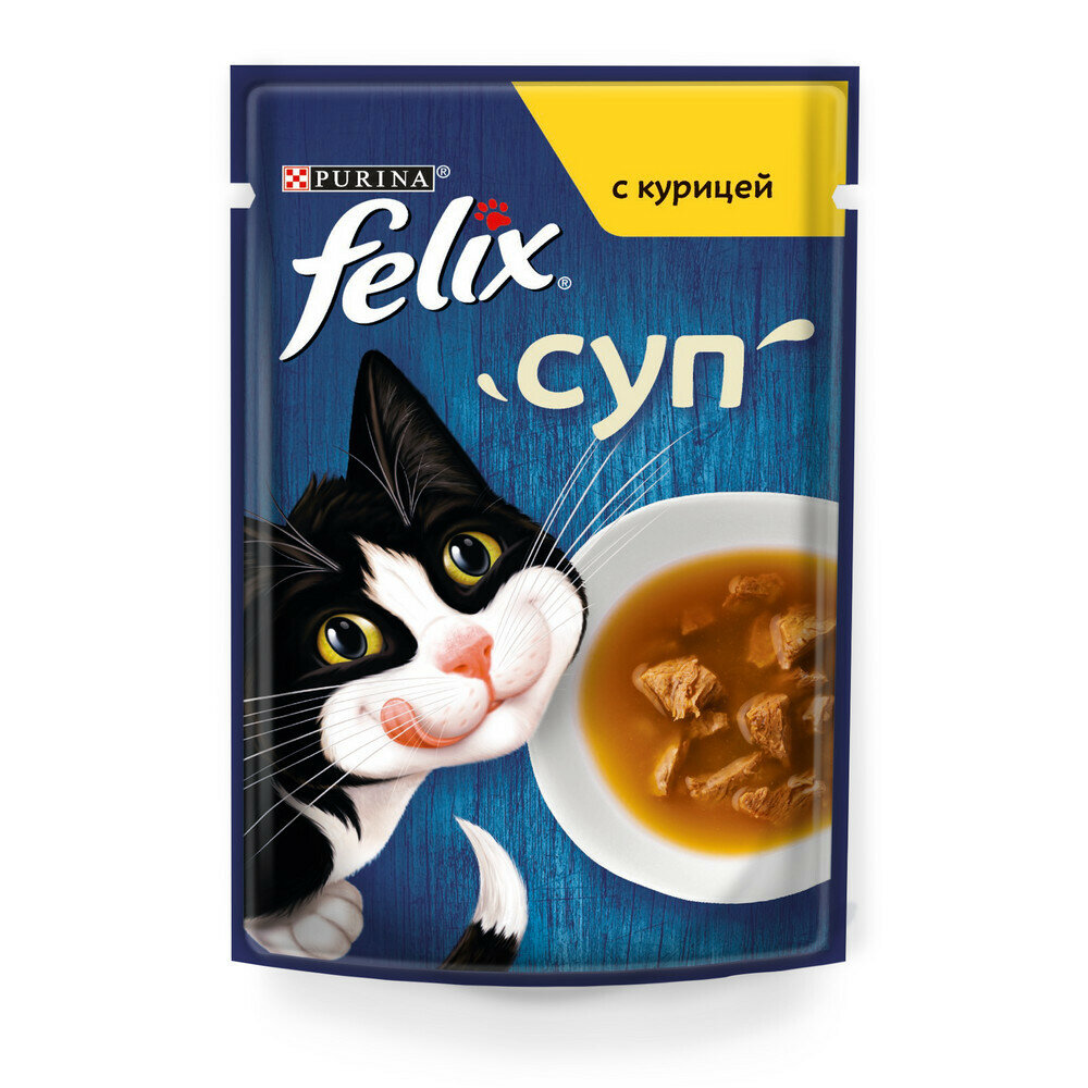 Влажный корм Felix Суп для взрослых кошек, с курицой, пауч, 48г х 26 шт