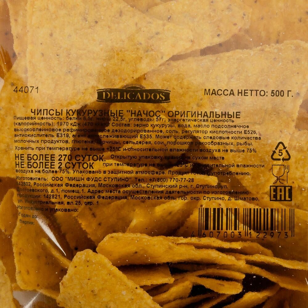 Купить Чипсы кукурузные Nachos оригинальные Delicados, 500г