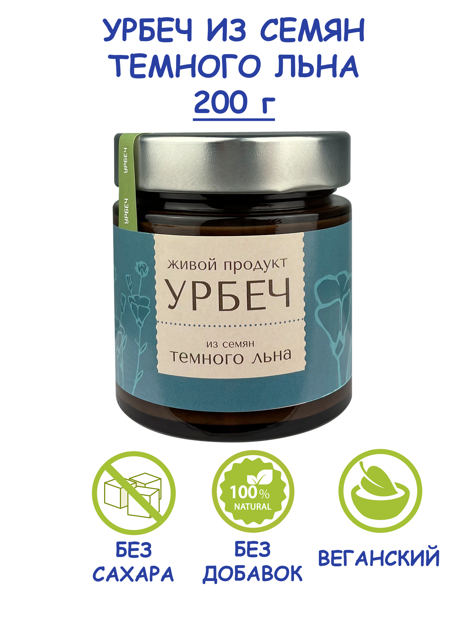 Урбеч Живой продукт из семян темного льна, паста 200 г Семена льна, Льняное масло без сахара полезные продукты натуральный