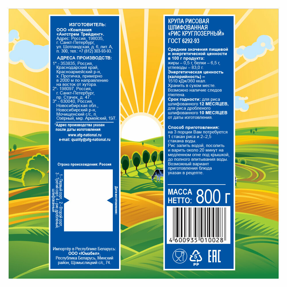 Рис Круглозерный Агрокультура 800г 1/12 7990302 интересное: