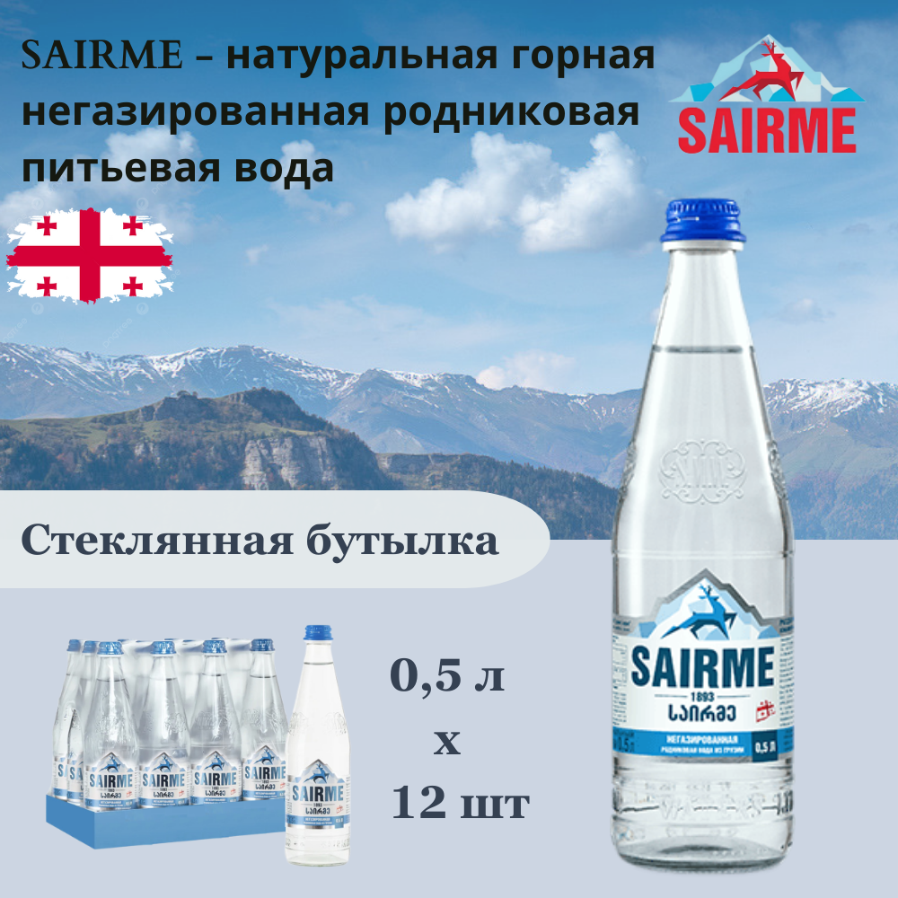 Вода родниковая питьевая Sairme / Саирме негазированная, стекло 0.5 л (12 штук)
