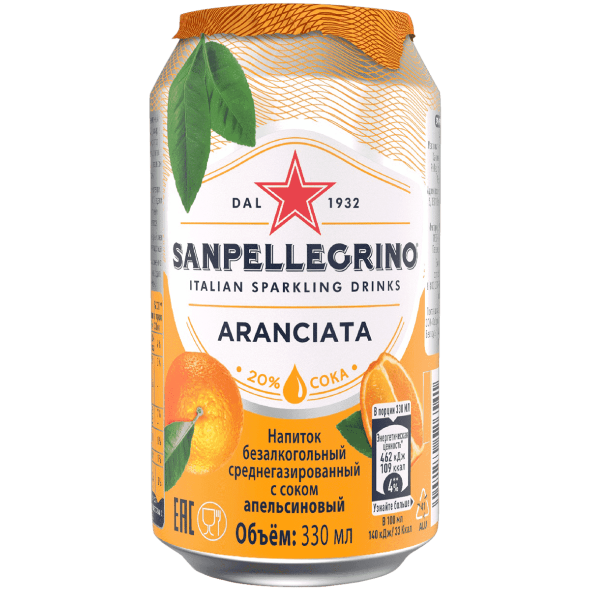 Напиток газированный Sanpellegrino (Сан Пеллегрино) с соком апельсина 0,33л х 6 шт. ж/б