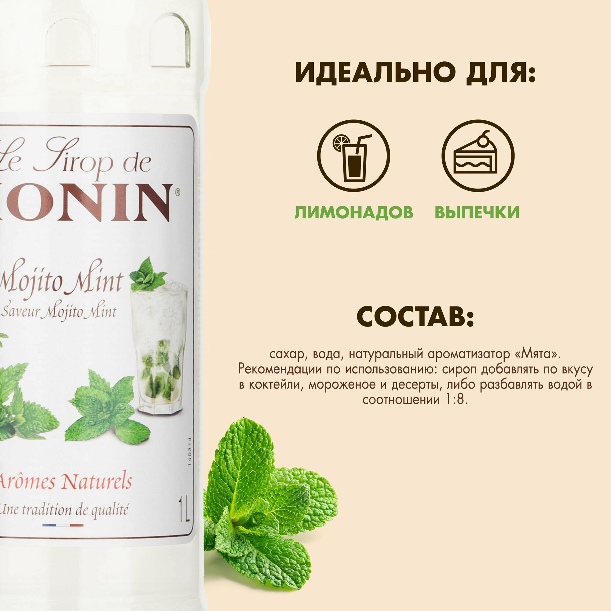 Сироп Monin Mojito Mint (Мохито ментол) 1л интересное: