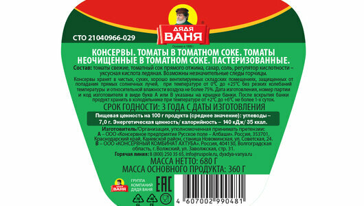 Ниже Вы можете прочитать отзывы на Томаты Дядя Ваня в томатном соке 680 г, ознакомится с подробными характеристиками, посмотреть интересные обзоры и фотографии на Томаты Дядя Ваня в томатном соке 680 г.
