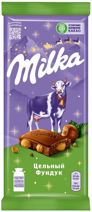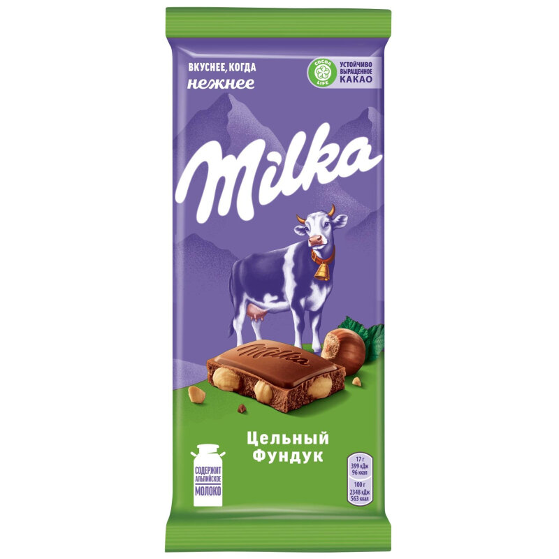 Шоколад MILKA (Милка) молочный, с цельным фундуком, 85 г, 100841