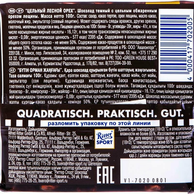 Купить Шоколад тёмный Ritter Sport (Риттер Спорт) Цельный лесной орех 100 г