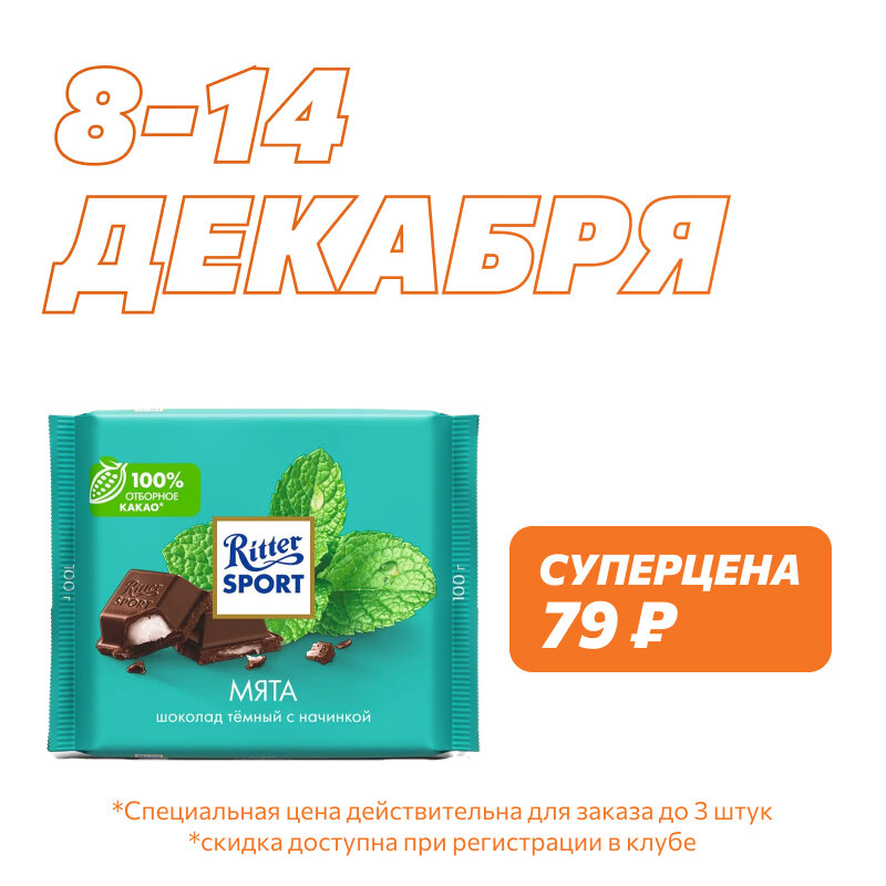 СохранитьШоколад тёмный Ritter Sport (Риттер Спорт) Мята 100 г интересное: