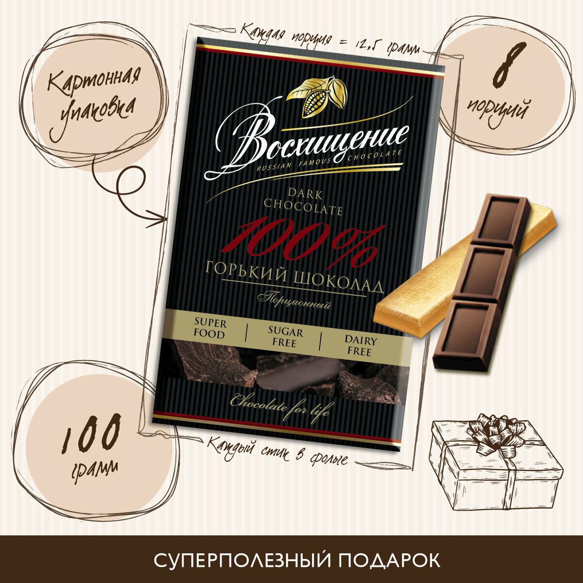 Шоколад "Восхищение" горький 100% какао, порционный 100г, без сахара, постный