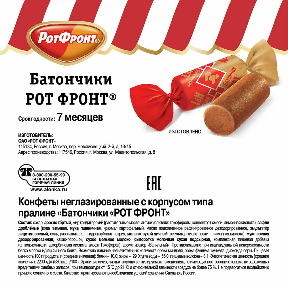 СохранитьКонфеты Батончики Рот Фронт 250 интересное: