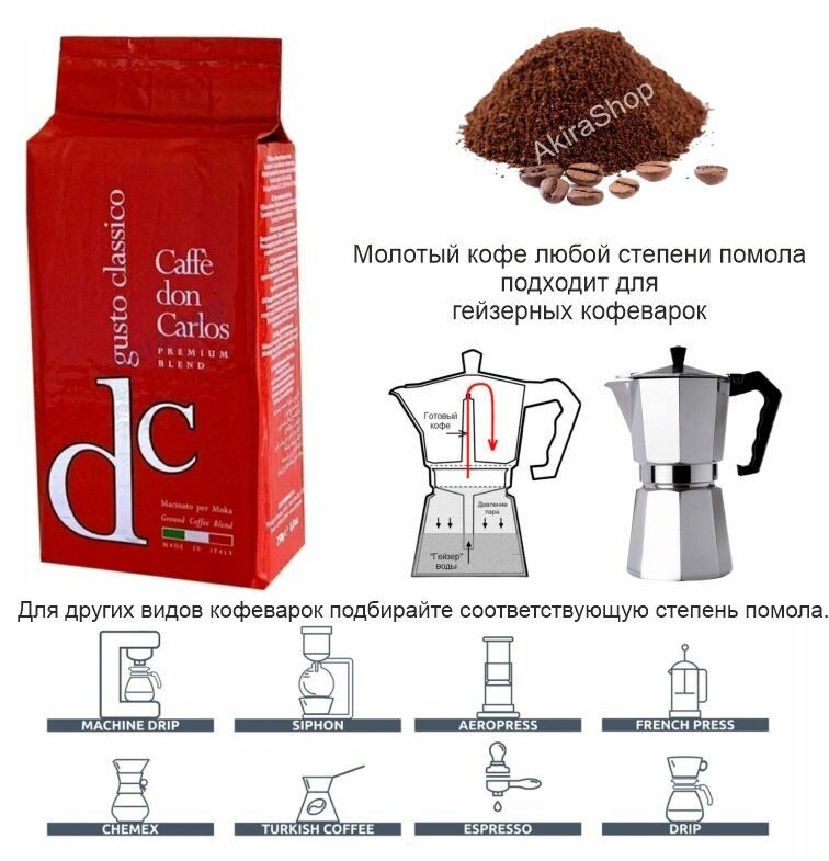 Кофе молотый Don Carlos Gusto Classico 250g 8000604800015