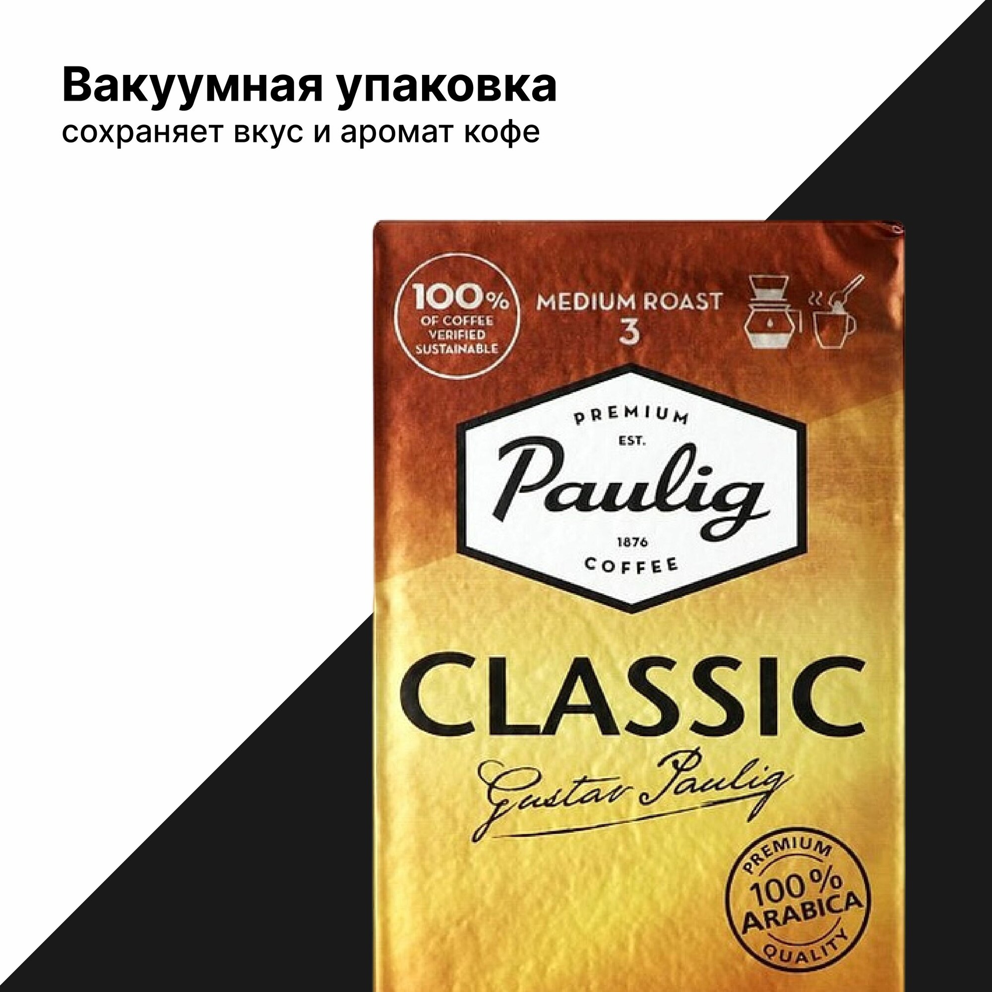 Кофе Paulig Classic, молотый, 1 кг, средняя обжарка, арабика, робуста