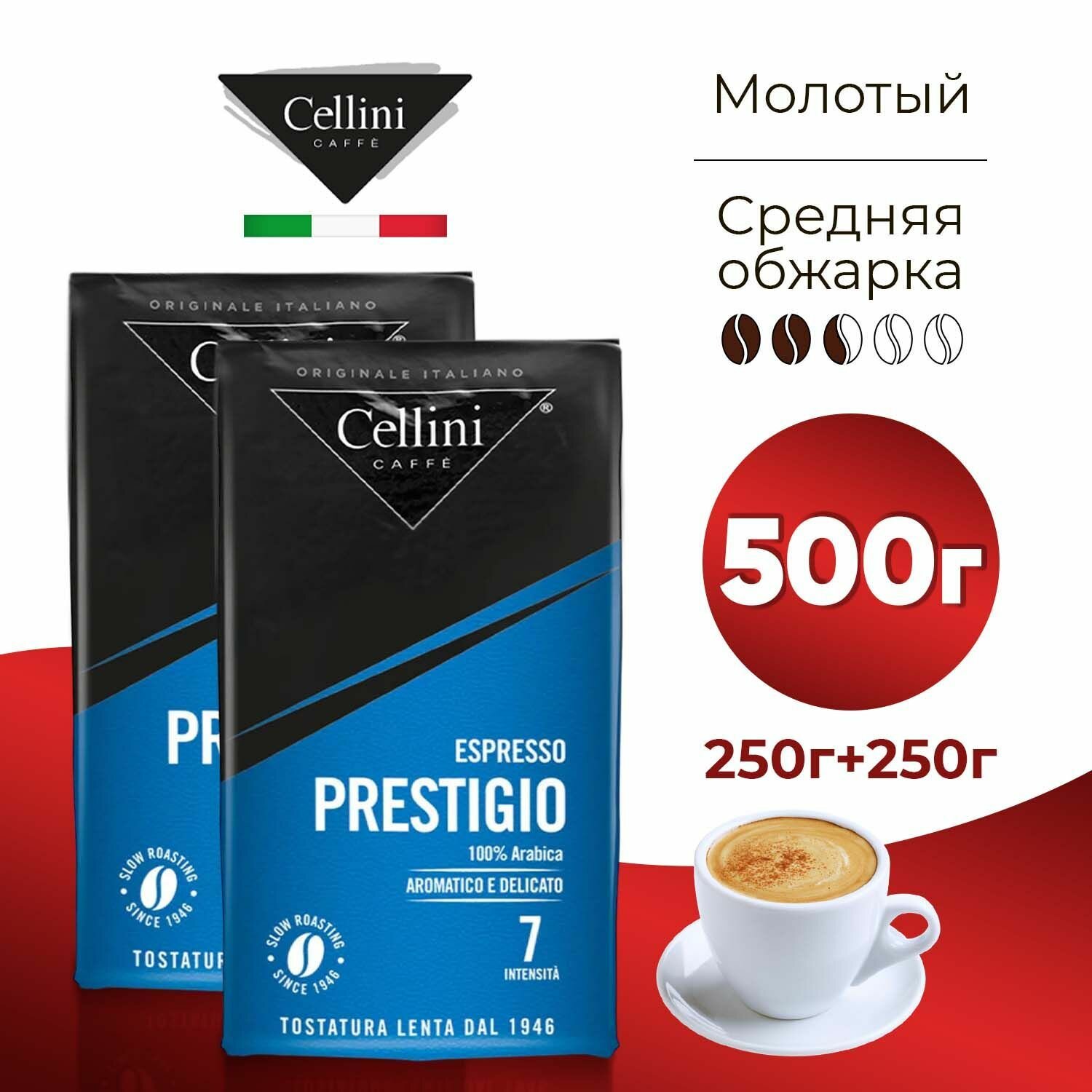Купить Cellini Кофе молотый Арабика 100% Prestigio, Набор 500гр (250г х2)