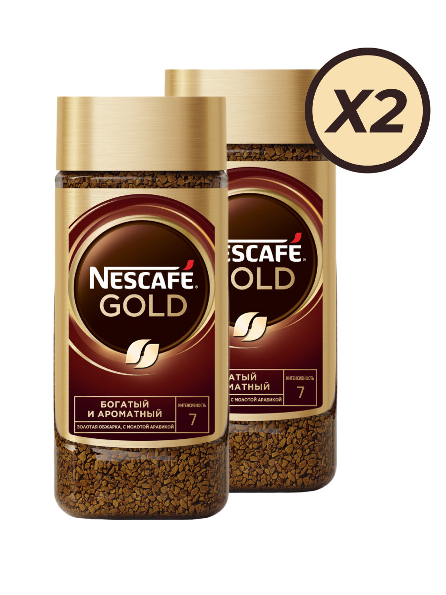 Кофе растворимый Nescafe Gold сублимированный с добавлением молотого, стеклянная банка, 2 уп. по 95 г