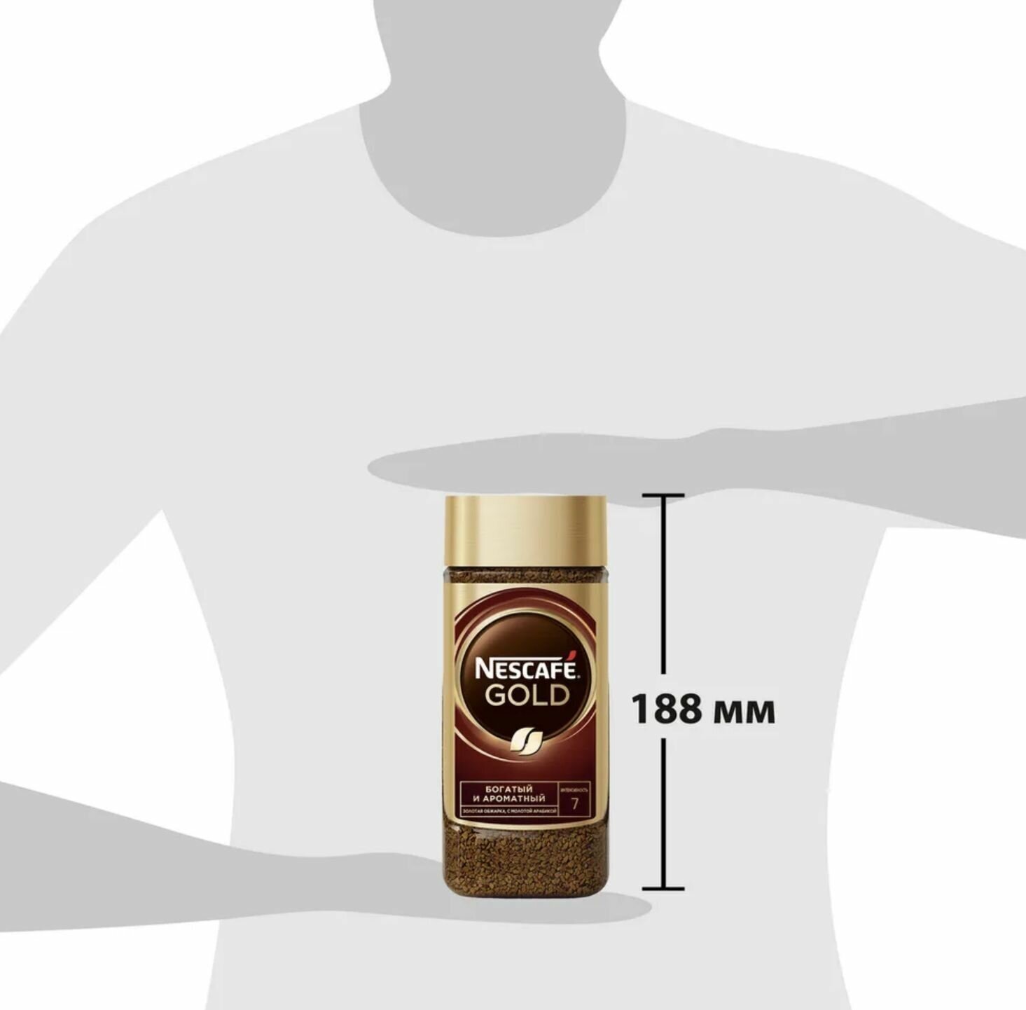 NESCAFÉ® Gold, 100% натуральный растворимый сублимированный кофе с добавлением жареного молотого кофе, 190г, стеклянная банка