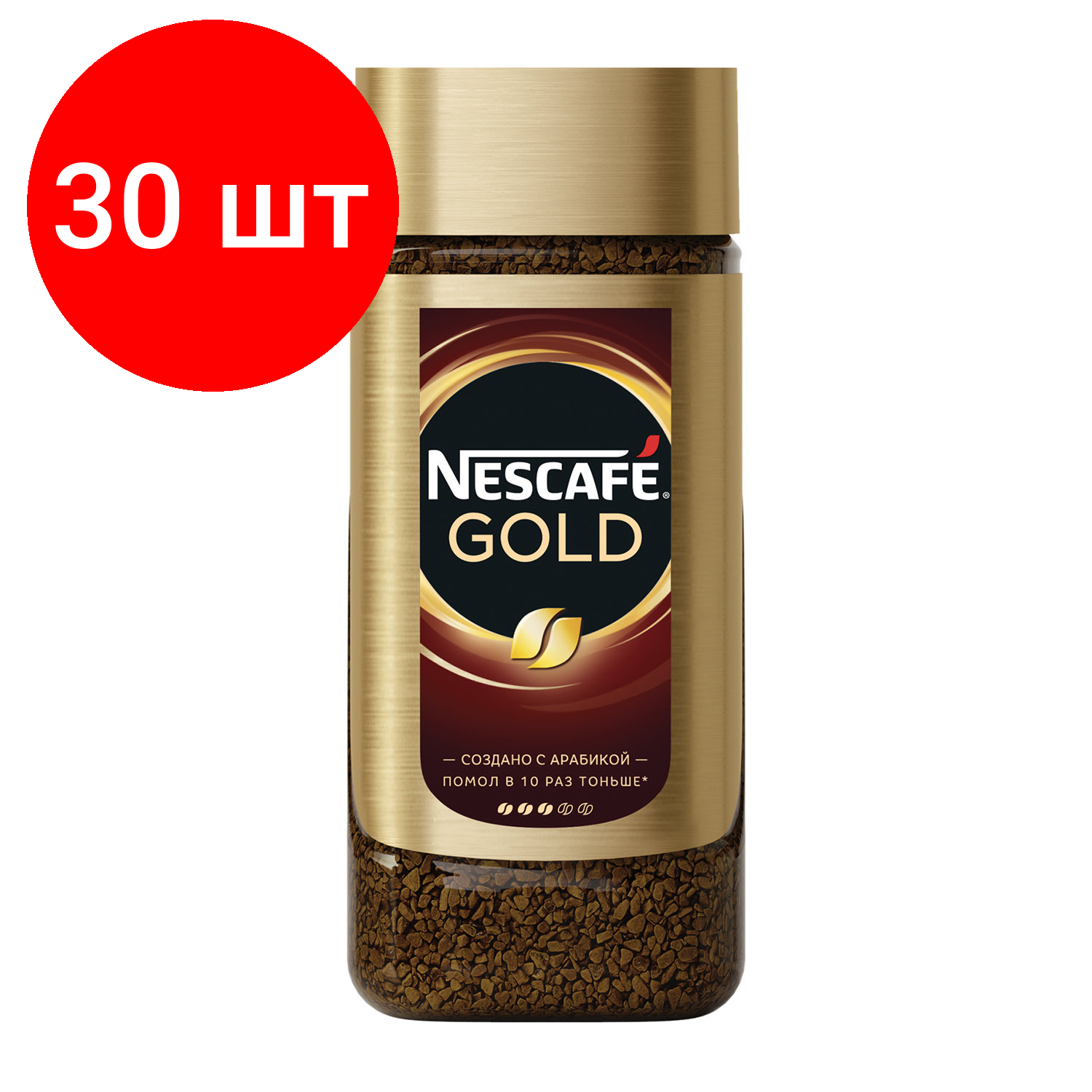 Комплект 30 шт, Кофе молотый в растворимом NESCAFE (Нескафе) "Gold", сублимированный, 190 г, стеклянная банка, 12135508