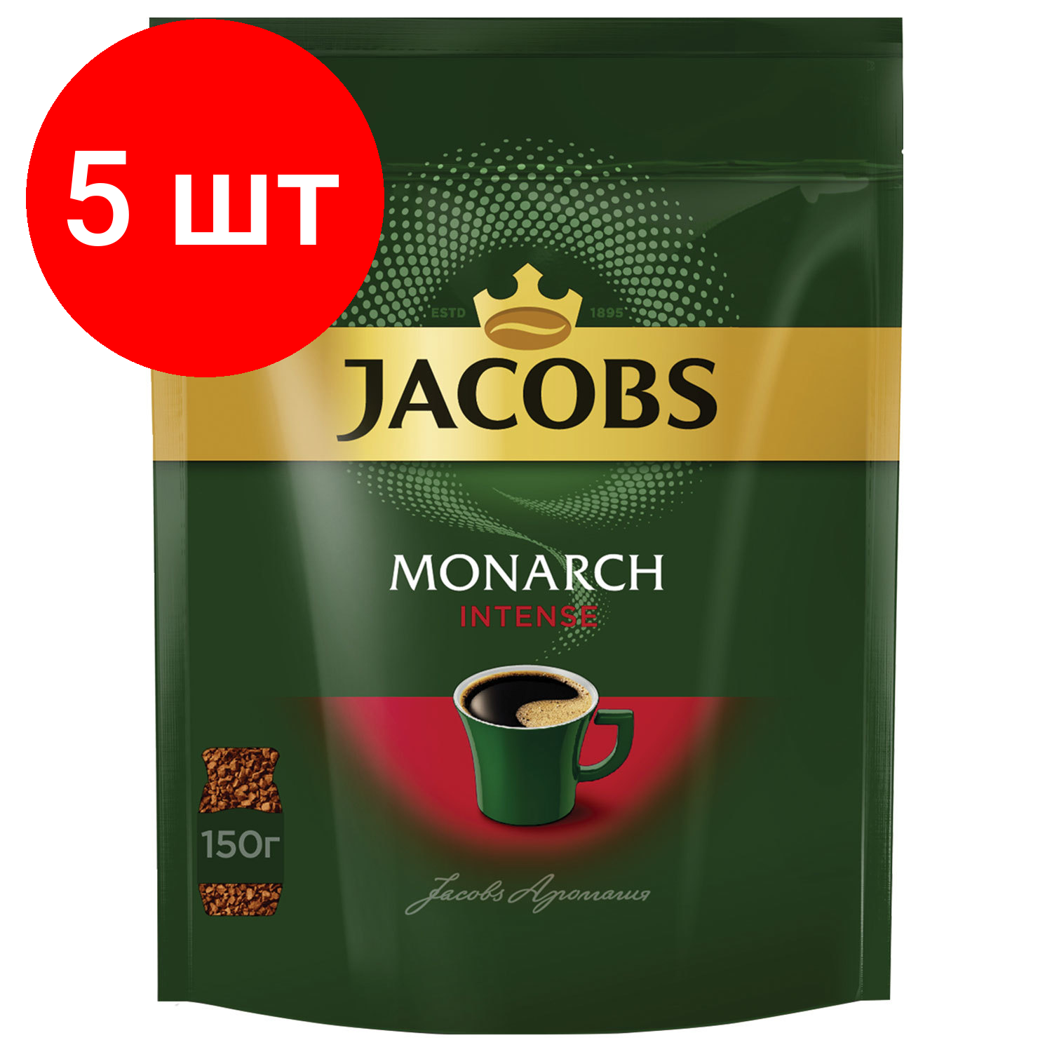 Купить Комплект 5 шт, Кофе растворимый JACOBS "Monarch Intense", сублимированный, 150 г, мягкая упаковка, 8051499