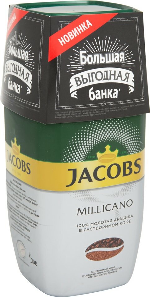 Кофе растворимый Jacobs Millicano с молотым кофе, 190 г стеклянная банка (Якобс)