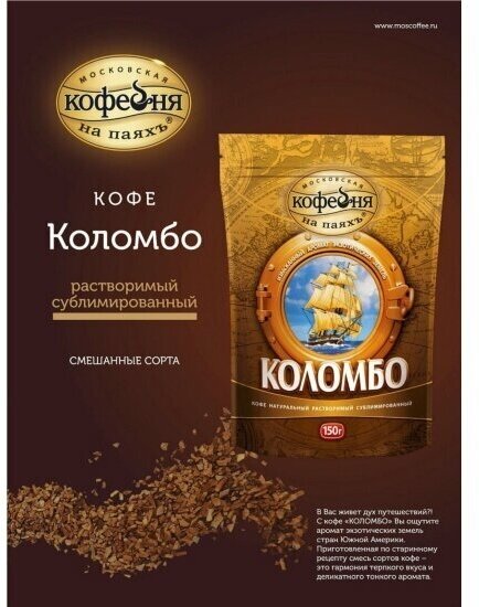 Московская кофейня на паяхъ Коломбо кофе рaстворимый, пакет 95 г