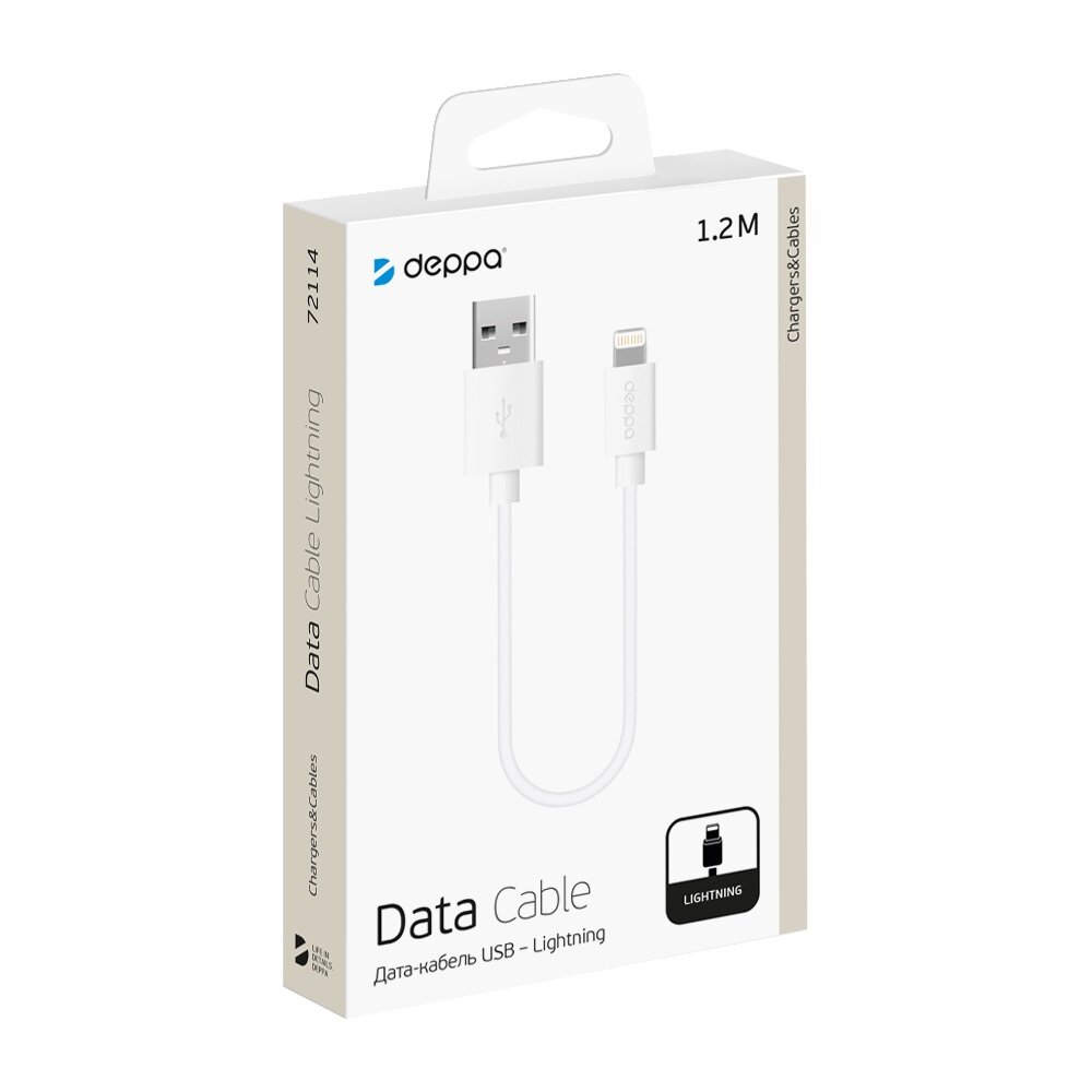 Кабель Deppa USB - Lightning 1.2м 2A White (Арт.72114)