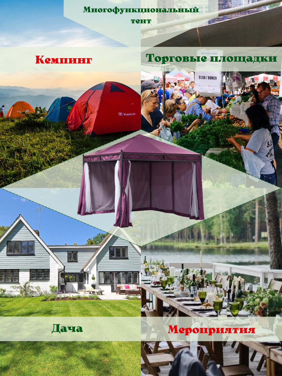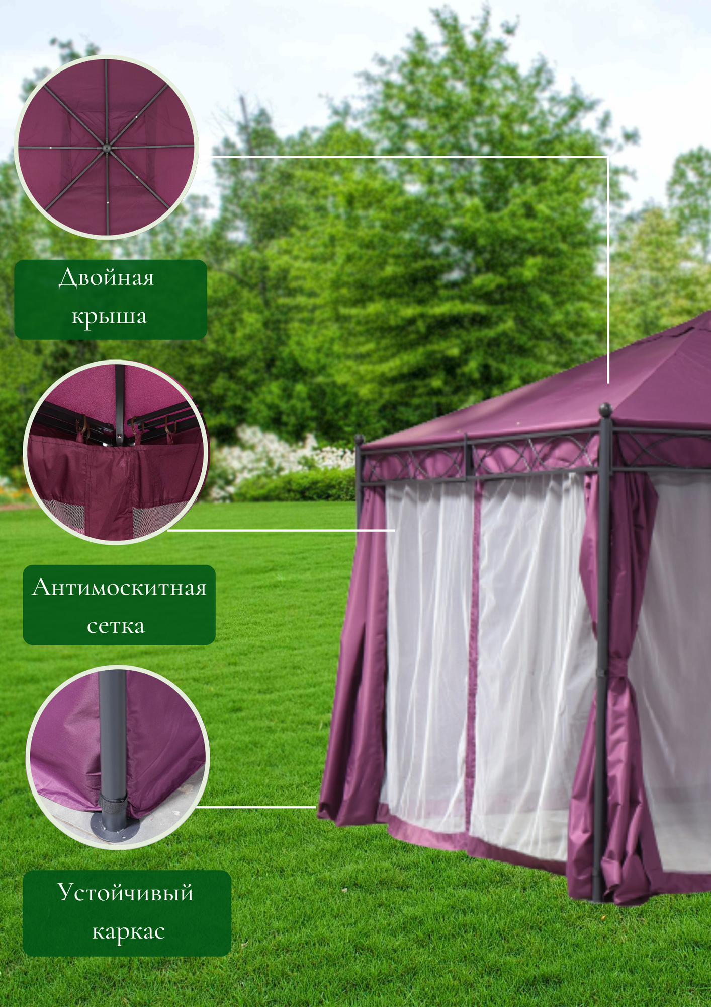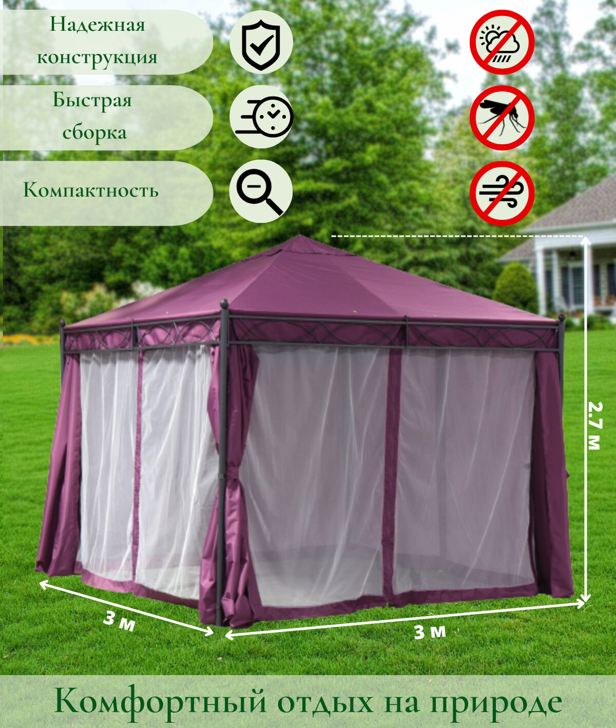 Шатер с москитной сеткой, фиолетовый, 3х3х2.7 м, усиленный с плотными шторками, Green Days интересное: