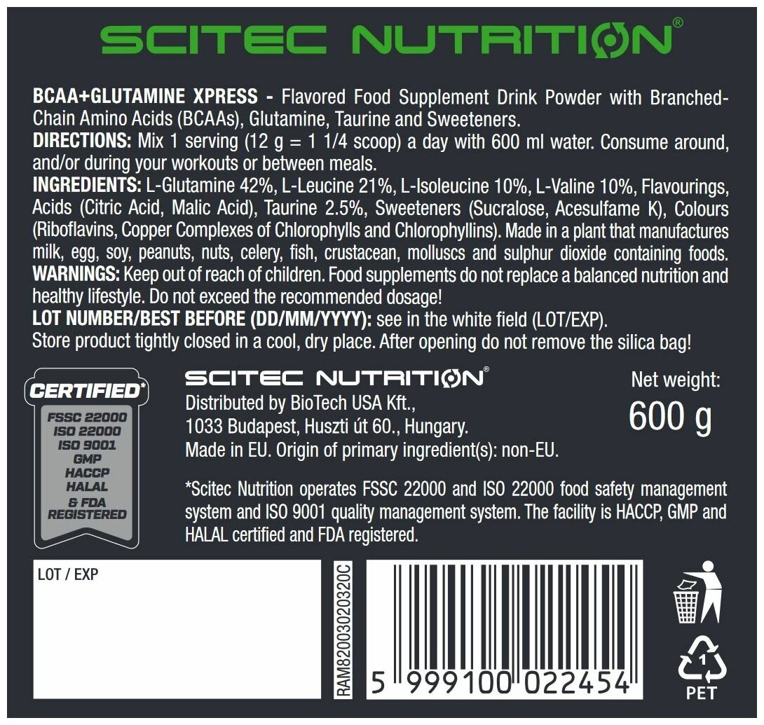 BCAA Scitec Nutrition BCAA + Glutamine Xpress, лайм, 600 гр.