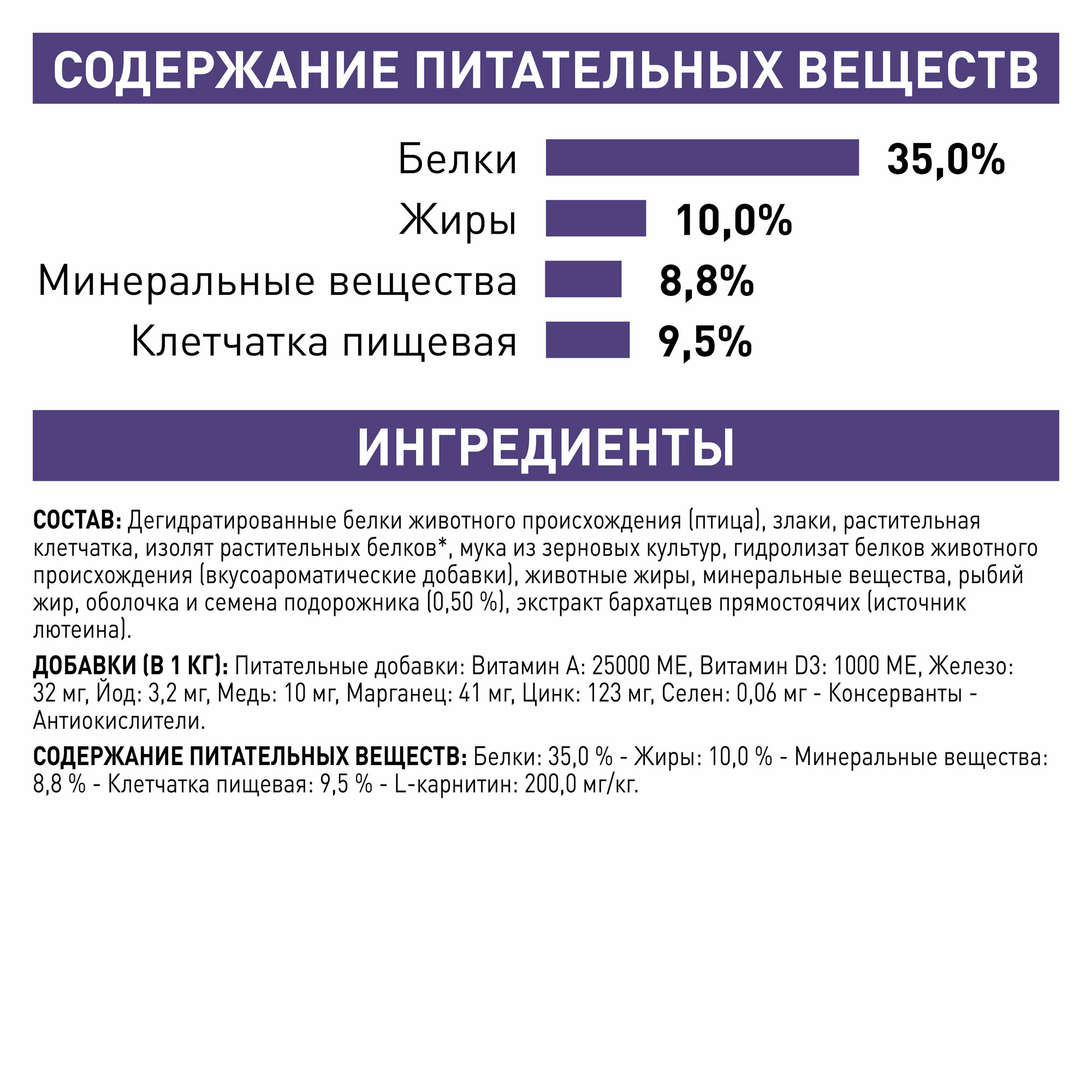 | Особые потребности | для стерилизованных/кастрированных |