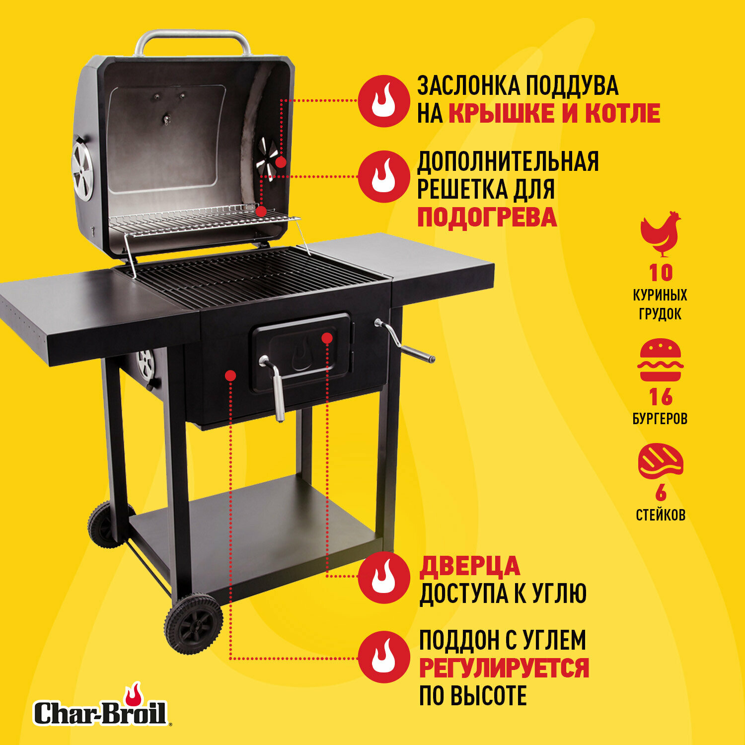 Гриль на дровах Char-Broil Performance 580, 122х55х112 см интересное: