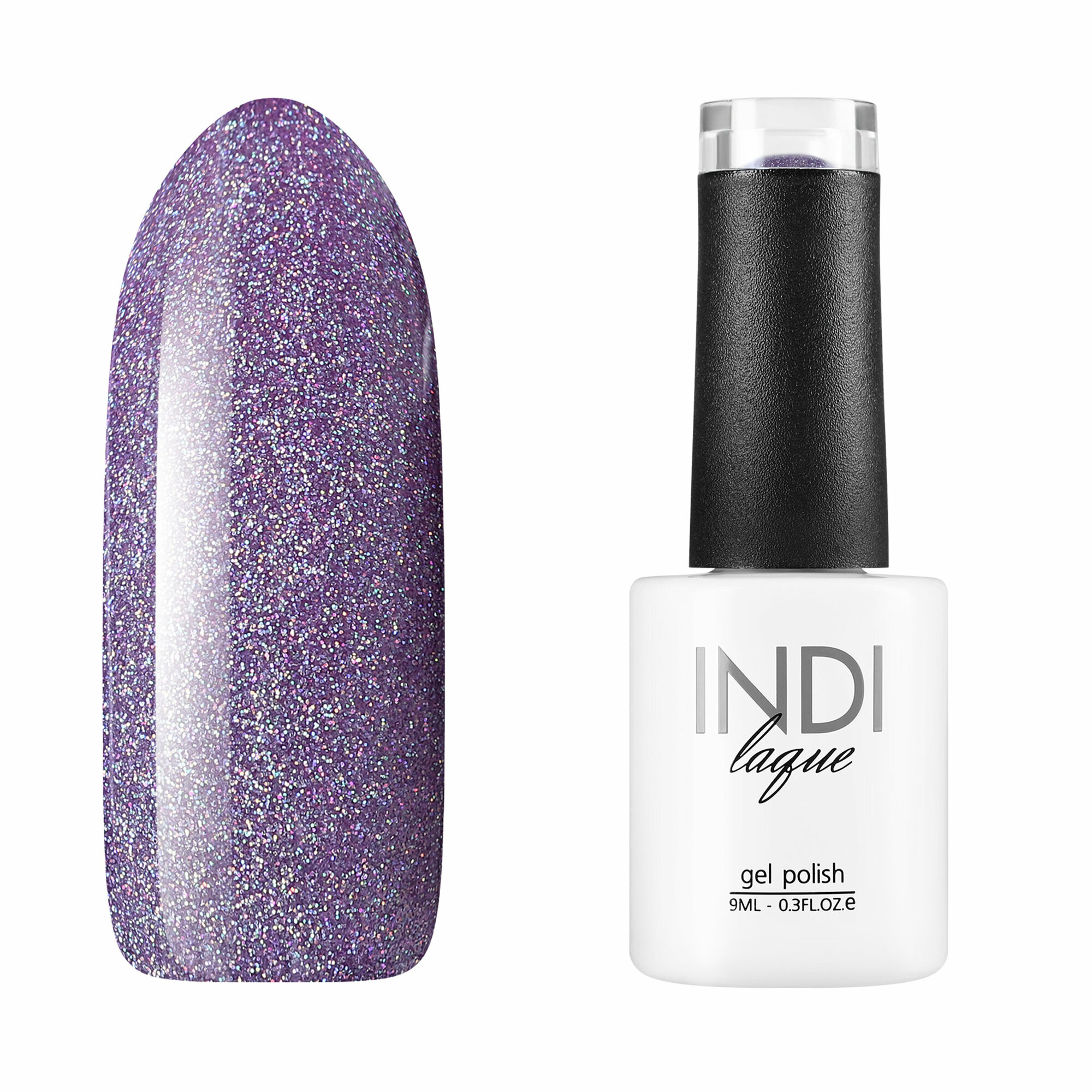 ruNail, Гель-лак INDI laque, 9 мл №3682 (фиолетово-сиреневый, с голографическими микроблестками, плотный.)