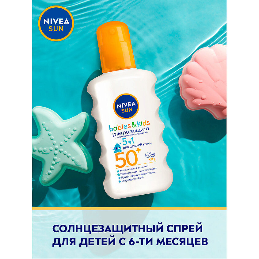 Nivea Sun Ультразащита Детский солнцезащитный спрей, для чувствительной кожи, SPF 50+, сверхводостойкий, 200 мл.