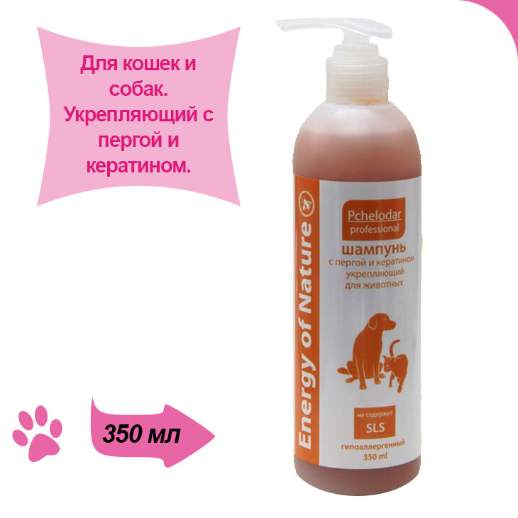 Шампунь Пчелодар ENERGY of NATURE укрепляющий с пергой и кератином для животных, 350мл