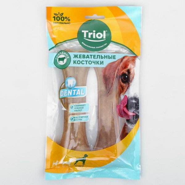 Лакомство для собак Triol косточки жевательные DENTAL, 16см, 160-170г, (в упаковке 2шт)