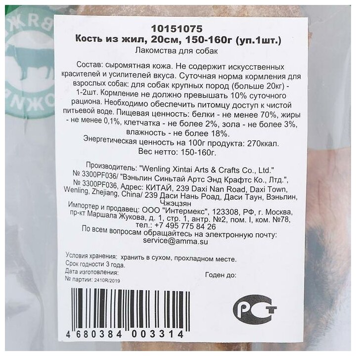 СохранитьЛакомство TRIOL для собак кость из жил 20 см 10 шт (1 шт) интересное: