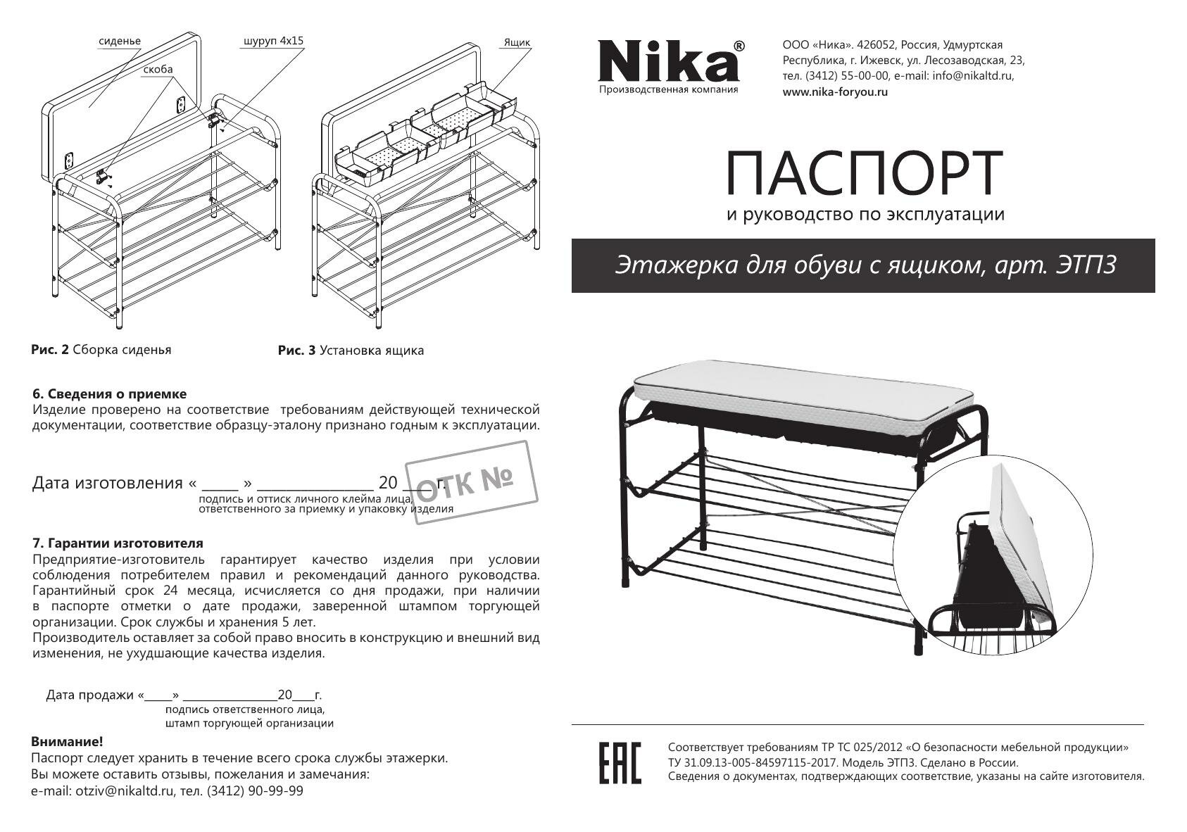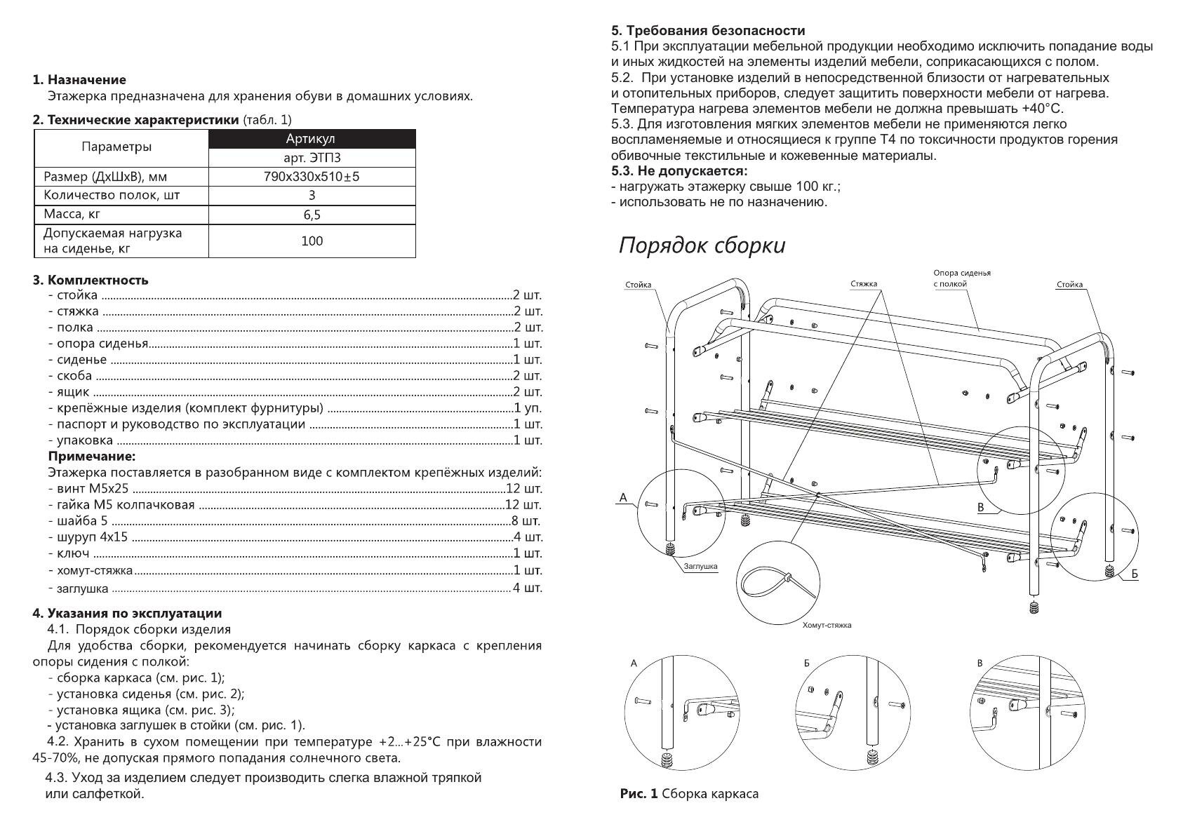 | Минусы: | Собирали обувницу муж с сыном, собрали без труда, хотя инструкция, как китайская грамота, собрали по фото с сайта, все гораздо понятнее, чем по инструкции. |