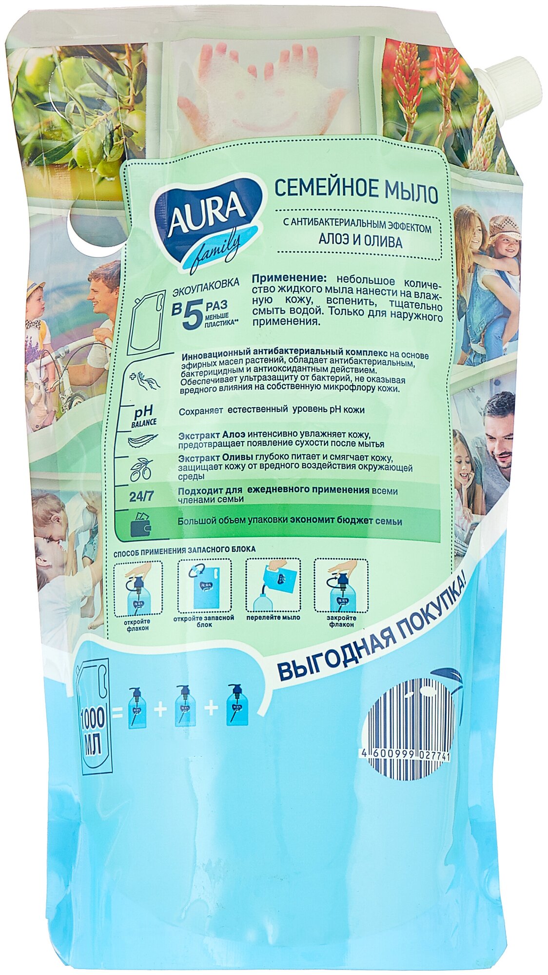 Купить Aura Family Antibacterial Жидкое Мыло Алоэ/Олива {Дой-пак} 1л