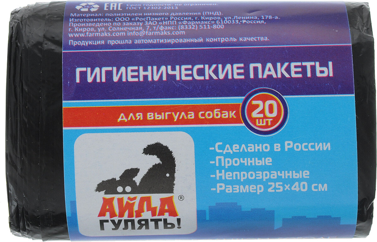Купить Фармакс Айда гулять: Пакеты гигиенические для выгула собак, 20 шт.