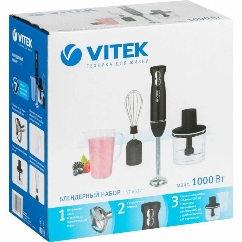 Блендерный набор VITEK VT-8527 BK, 1000Вт, 2 режима, измельчитель, венчик