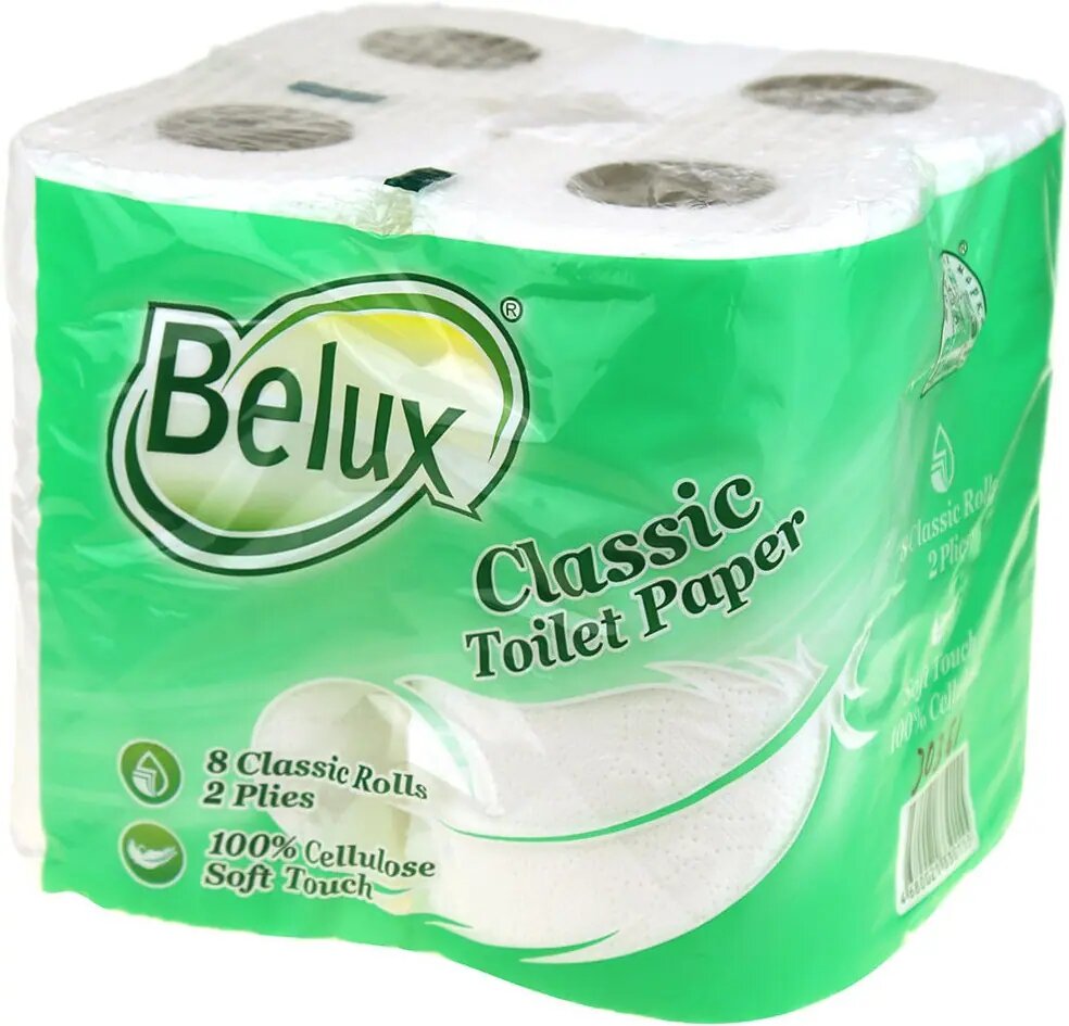 Belux Туалетная бумага Classic, 8 шт/уп, 2-х слойная, белая/