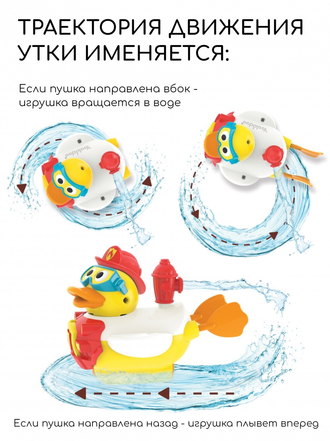 Игрушка для ванной Yookidoo Утка-пожарный с водометом и аксессуарами интересное: