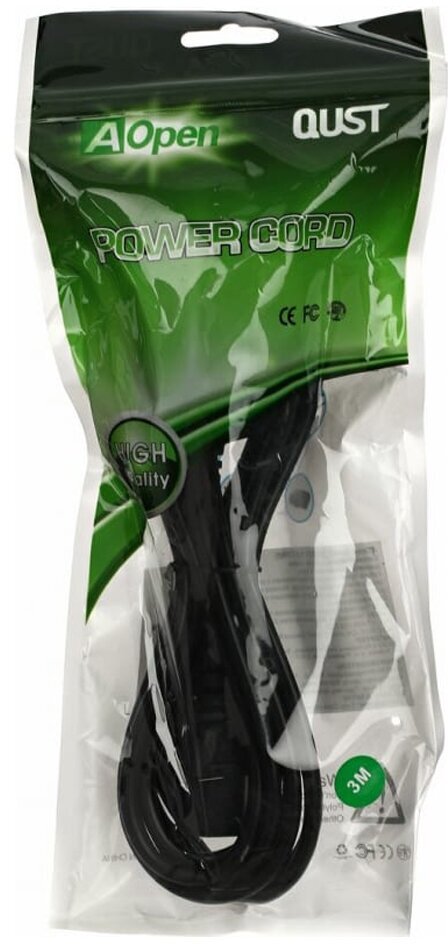Кабель Aopen/qust компьютер --> розетка 220V ( угловая Евровилка)Aopen , 3,0m