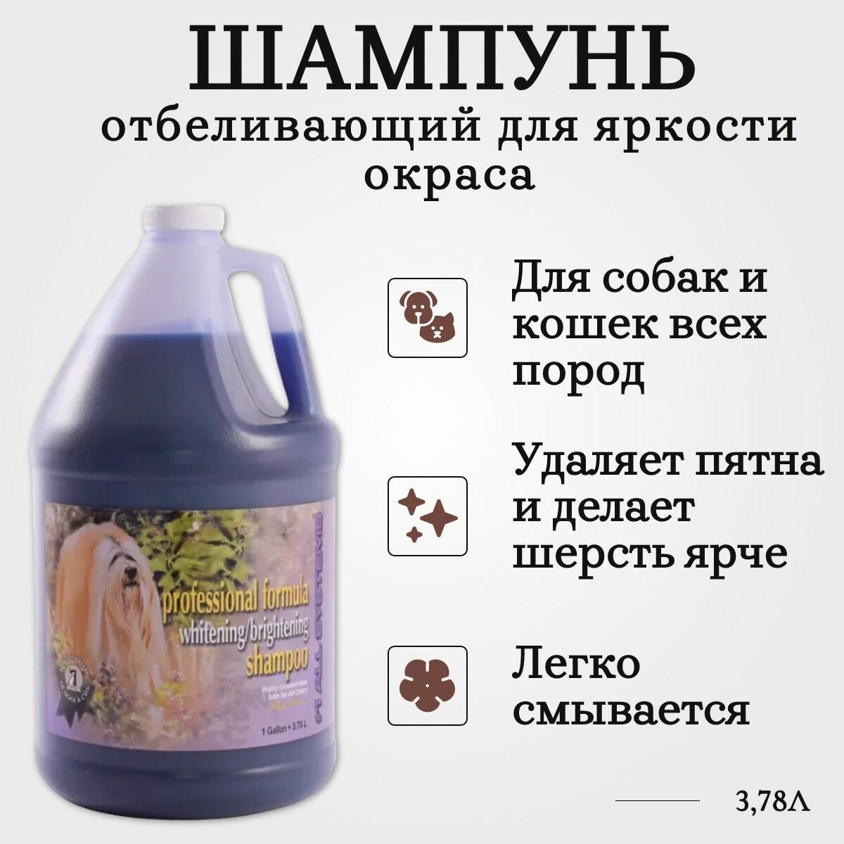Шампунь #1 All Systems Whitening Shampoo отбеливающий для яркости окраса для кошек и собак , 3.78 л