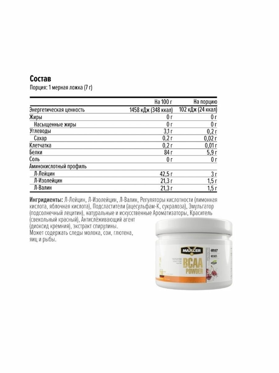 Maxler BCAA Powder 210 гр Вкус: Вишня