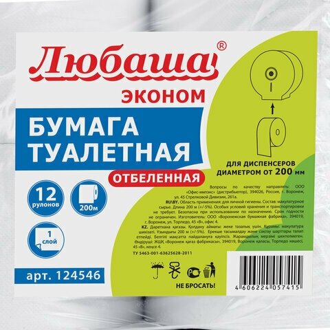 Бумага туалетная 200 м, лайма эконом-универсал, комплект 12 штук, диспенсеры 601427, 600164