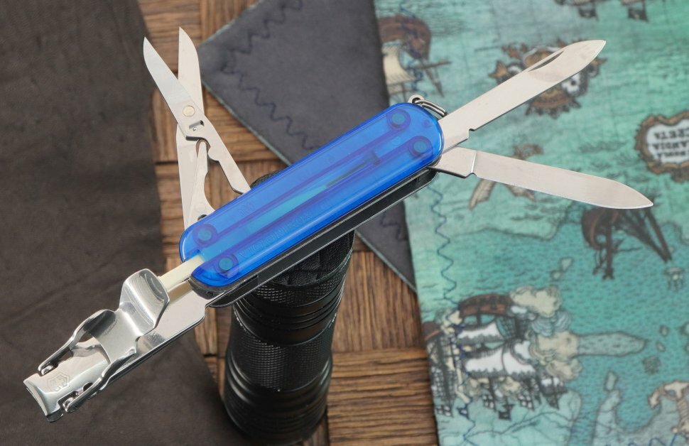Нож многофункциональный VICTORINOX Nail Clip 580 синий полупрозрачный