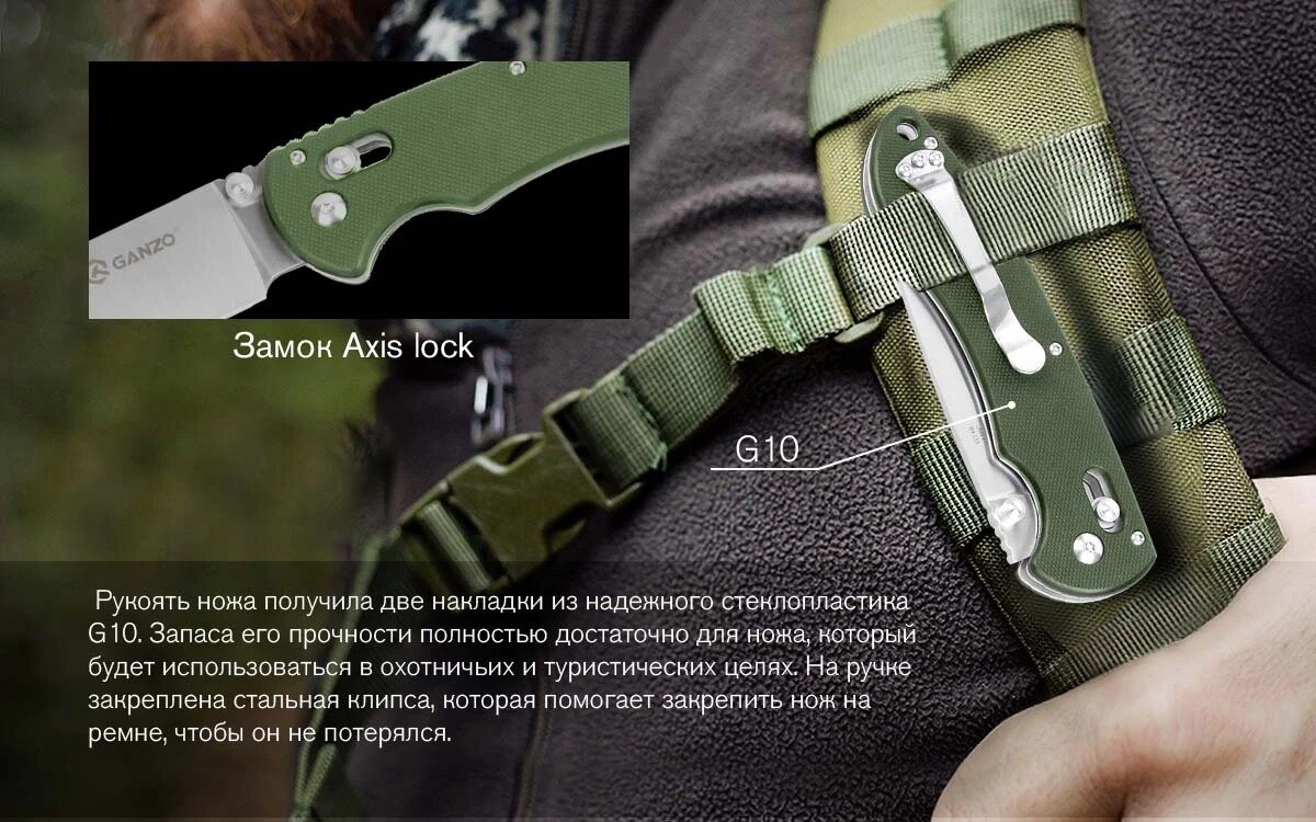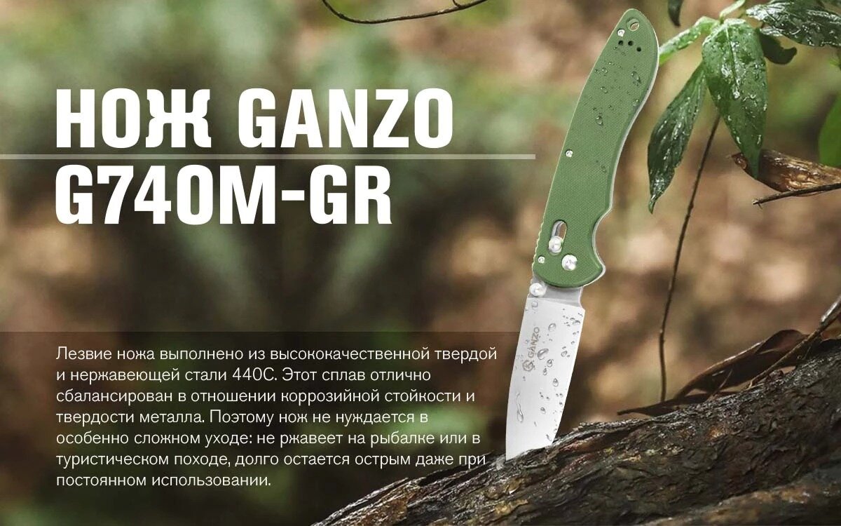 СохранитьНож складной туристический GANZO G740 зеленый интересное: