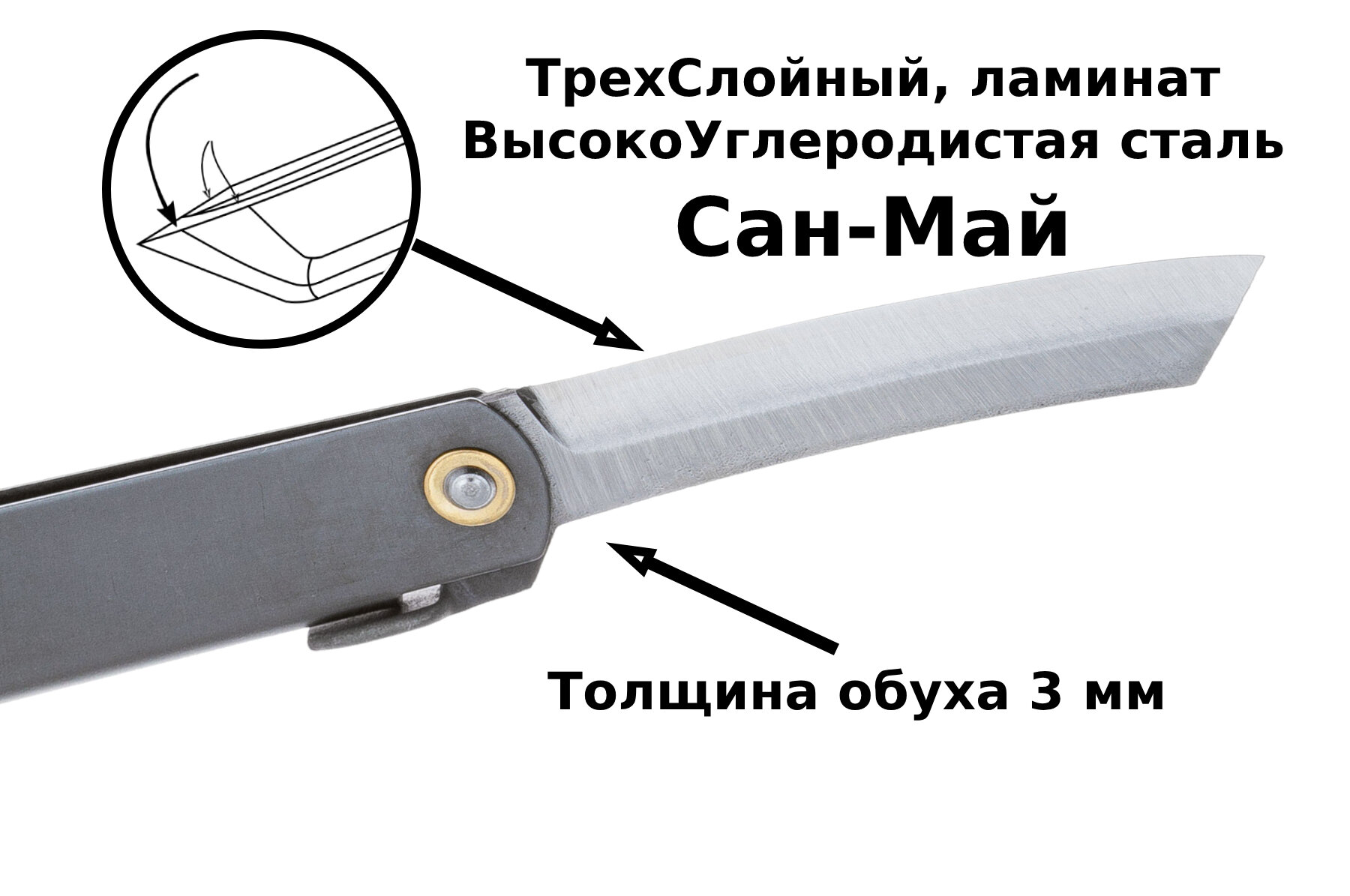 Nagao Kanekoma 100 Silve (8SV) — Складной нож Хигоноками, высокоуглеродистая сталь, 3 слоя интересное: