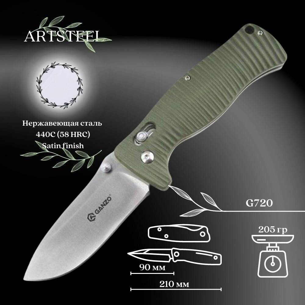 Складной нож Ganzo G720-G, сталь 440C, рукоять G10