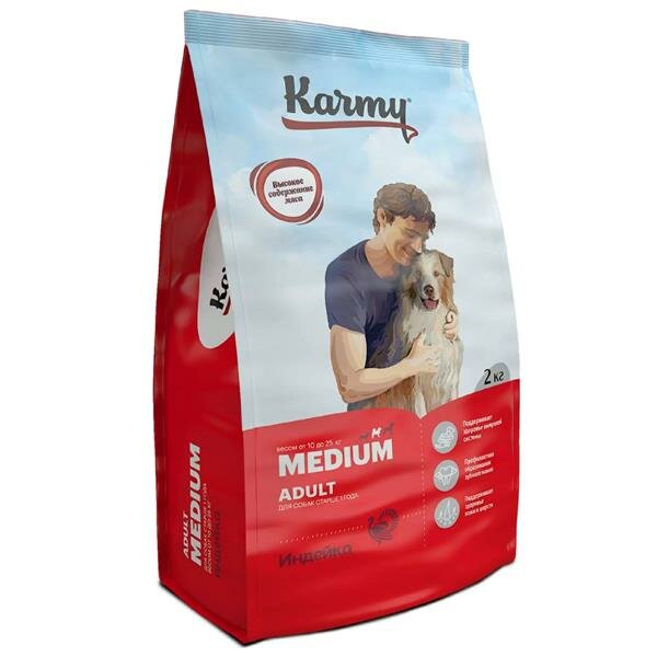 Корм Karmy Medium Adult для собак средних пород, с индейкой, 2 кг