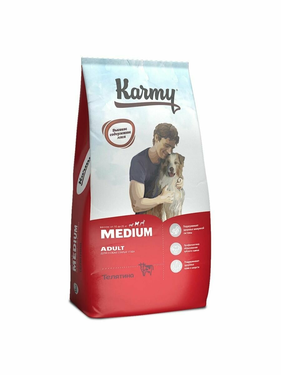 Сухой корм Karmy Medium Adult для взрослых собак средних пород старше 1 года, Телятина 14 кг