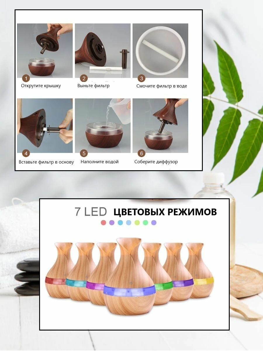 Ультразвуковой увлажнитель/ увлажнитель воздуха для квартиры/ аромадиффузор воздуха ZDK H66 dark wood, темно-коричневый